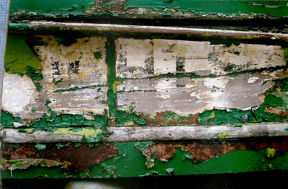 Looking beyond the green paint and the remnants of an old advert can just be made out “Whites”. (All Photographs by Mike Scott)