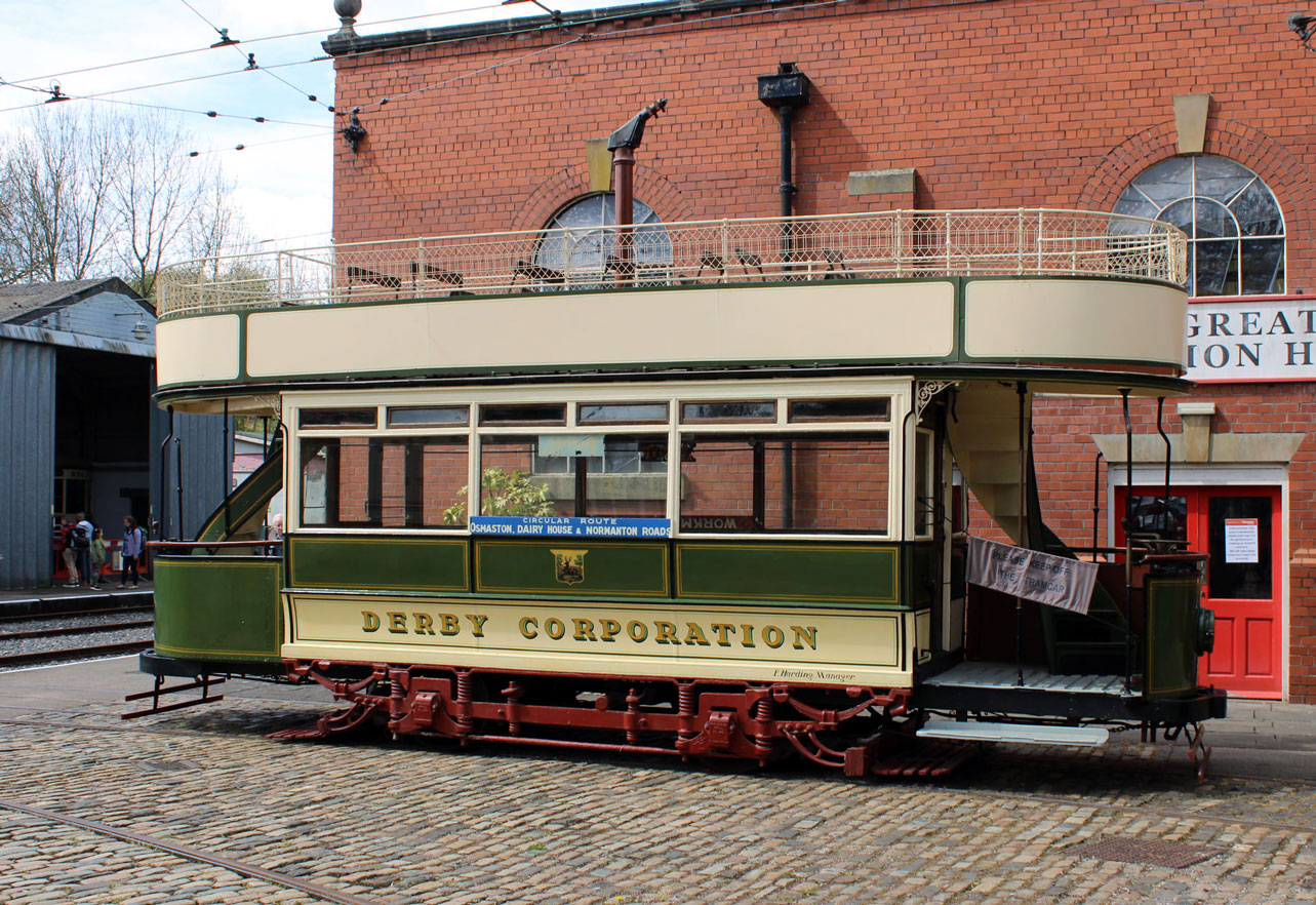 Derby 1 was one of the star attractions for visitors to Crich on 2nd May, making its last outdoor public appearance before its transfer to Clay Cross. Notice that its infamous bent trolley has finally been removed!