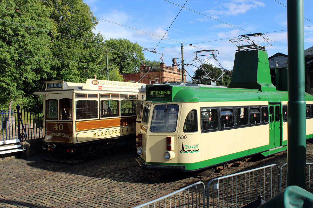 A mini line-up with fellow ex-Blackpool cars Box 40 and Brush car 630 on the depot fan, and a glimpse of the access tram in between the two!