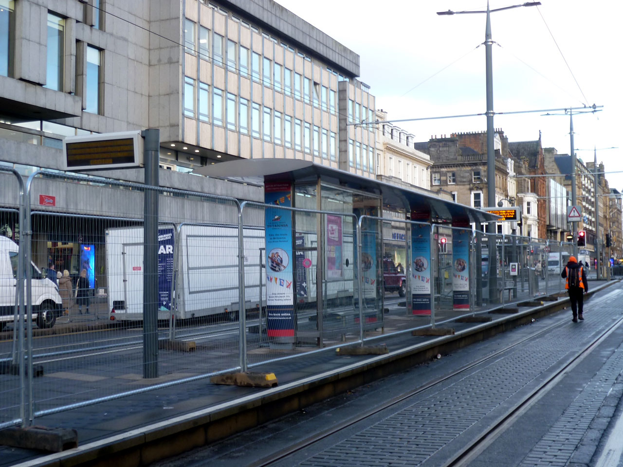 Princes Street tramstop was barriered off during the closure. (All Photographs by Roy Calderwood, 31st December 2023)