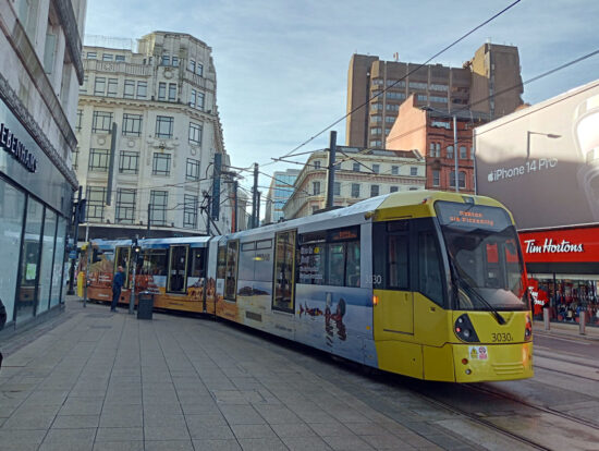 Another new advert to report on from Manchester Metrolink – 3030 has gone from an ad for Pension Bee to one for Jordan (the country). This is the third different advert that 3030 has carried in its operating career in Manchester.