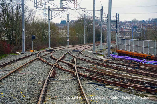 Tipton Junction (the name of where old and new meet at Wednesbury) showing its newly installed connected tracks.