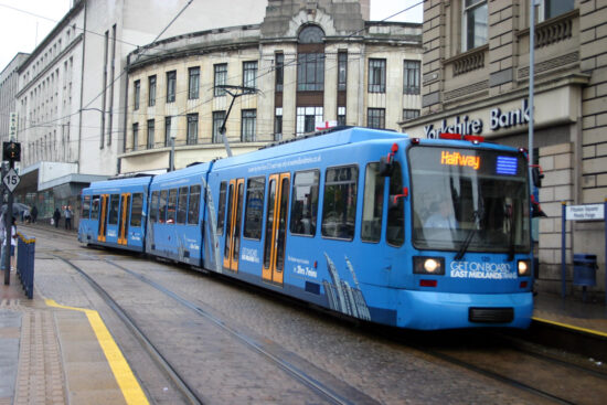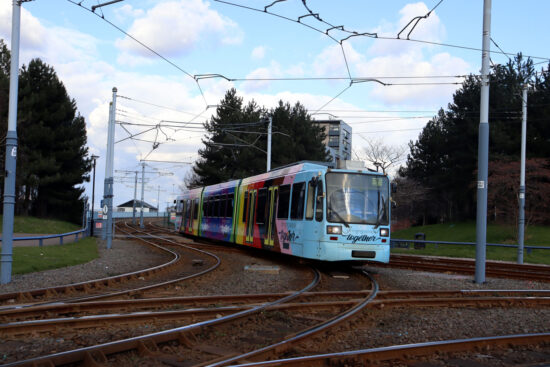We move to 2025 now and 120 is now in a special livery promoting inclusivity – as it tells us “Bringing People Together”. This livery has been on the tram since September 2023. On 14th March 2025 the tram is on the Yellow route as it comes to the Park Square Junction with a service to Middlewood. (Both Photographs by Gareth Prior)