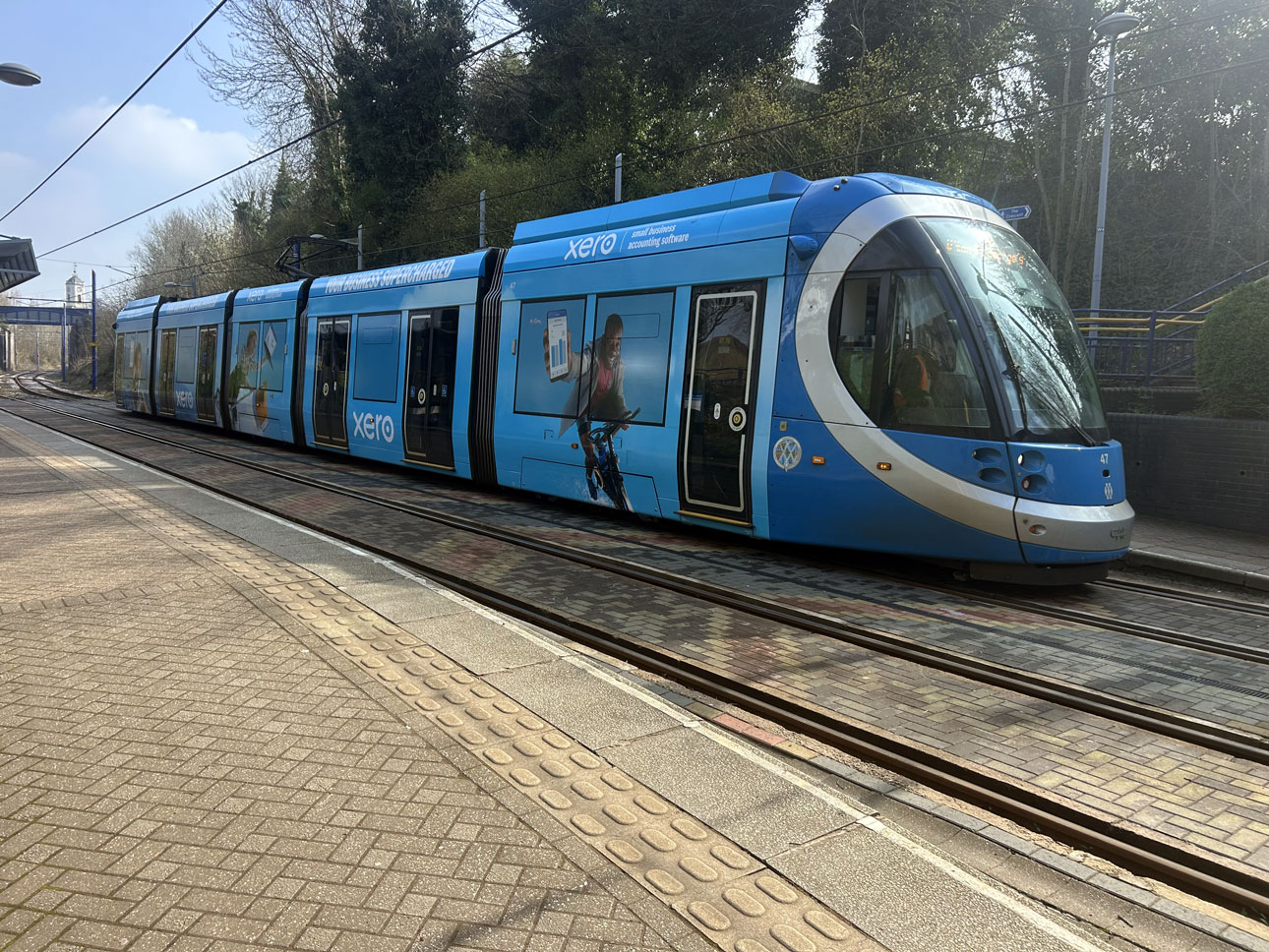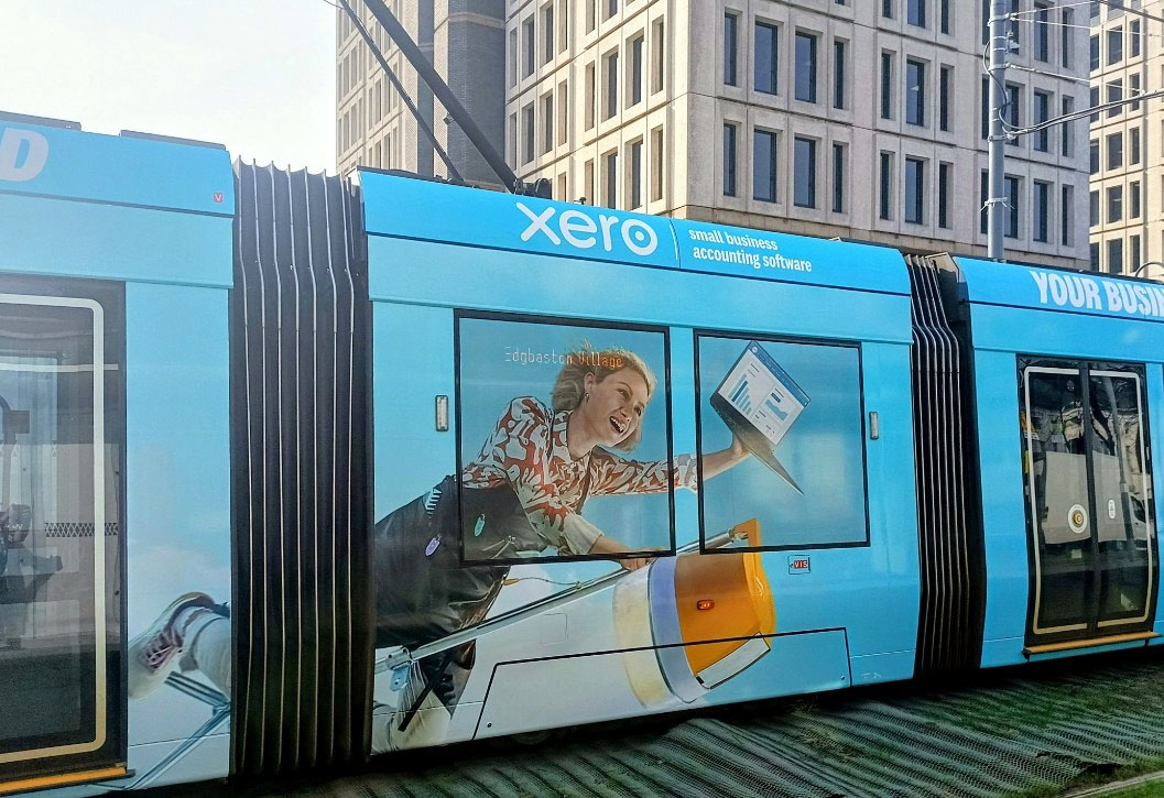 The recent pattern of the same adverts appearing on trams on both the West Midlands Metro and Manchester Metrolink has continued with Xero taking out contracts on both systems within a couple of days of each other. The trams to carry the adverts are West Midlands Metro 47 and Manchester Metrolink 3102.