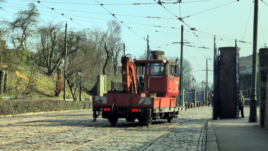 Glasgow 22 is one of the trams which has seen regular use so far in 2026 and it was out again on the second Saturday of the season. This image shows the tram just passing the depot entrance. This is currently the only operating Glasgow tramcar anywhere in the world!