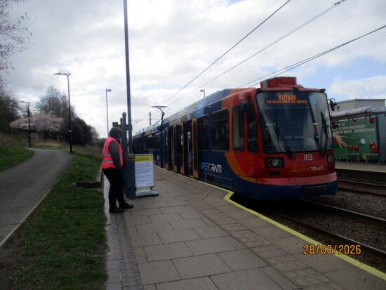 As we reported a few days ago, the first major trackworks of 2026 got underway on the South Yorkshire Supertram network from Saturday 28th March. The 16-day project will see no trams running between Sheffield Station and Gleadless Townend to allow rail replacement at Manor Top, on City Road, Park Grange Road and Hollinsend. In this article we take a look at the temporary operations at Sheffield Station as well as the start of the trackwork. Stuart Cooke with the images.