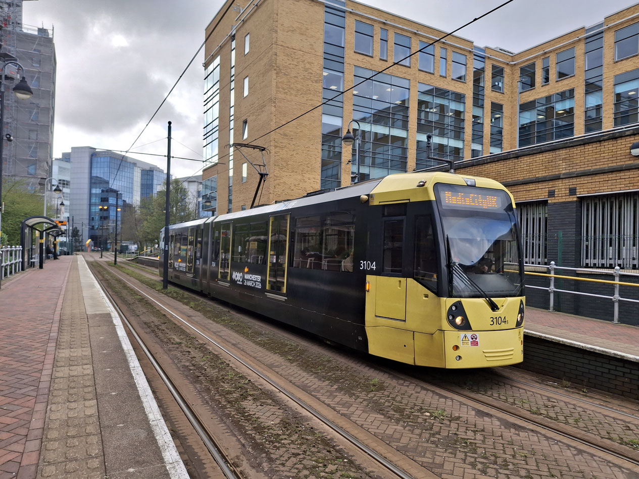 Another award ceremony in Manchester is over and the vinyls on a tram which was advertising it taking place have quickly been removed! Metrolink 3104 is now running back in fleet livery after its vinyls for the MOBO Awards were removed on Sunday 29th March 2026.