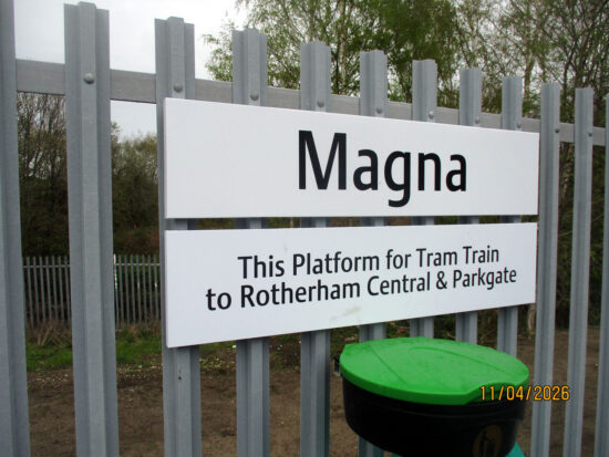 As we reported a few days ago, Thursday 9th April saw the opening of a new tramstop on the South Yorkshire Supertram network with Magna welcoming its first passengers. Located on the Tram-Train route it is on Network Rail infrastructure and as such is more than just a normal tramstop with an accessible bridge and plenty of safety features to try and prevent people from being tempted onto the tracks (it is of course a low floor platform). This pictorial article with images from Stuart Cooke takes a look around the stop.