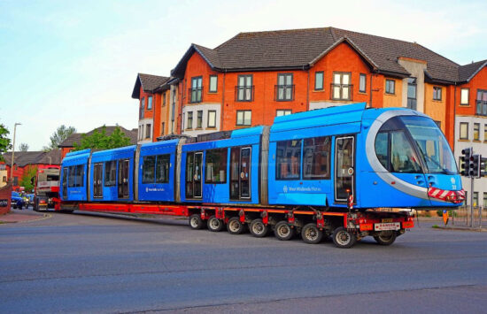 It may not exactly be the rarest of all photos – a West Midlands Metro tram on the back of a lorry has been seen countless times over the years, probably more than any other tram in the UK – but it has been some time since we last saw one of the Urbos3s being transported by road. This is 32 arriving at Dudley during the evening of 22nd April 2026. (Photograph by Andy Walters, 22nd April 2026)